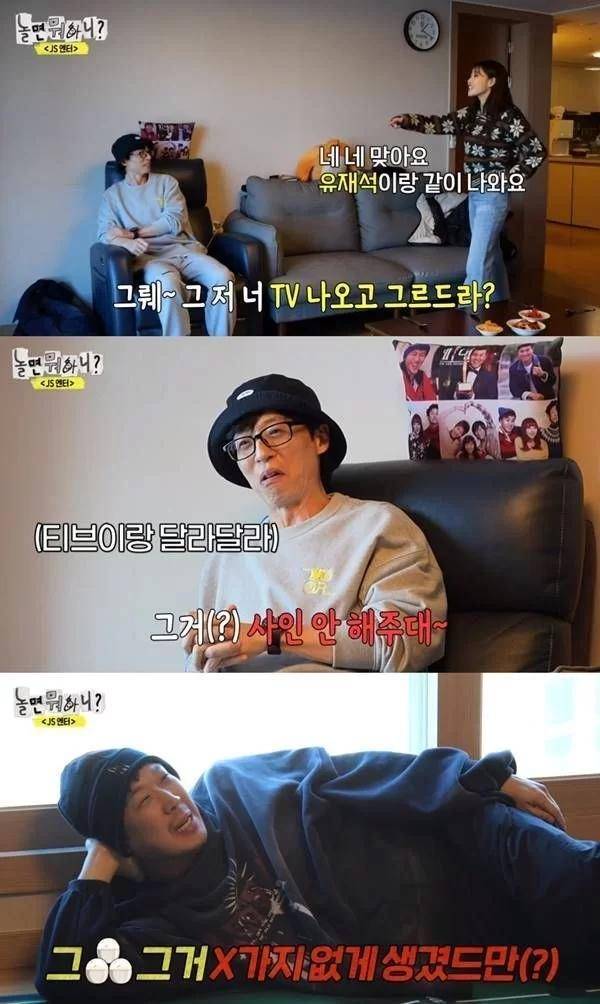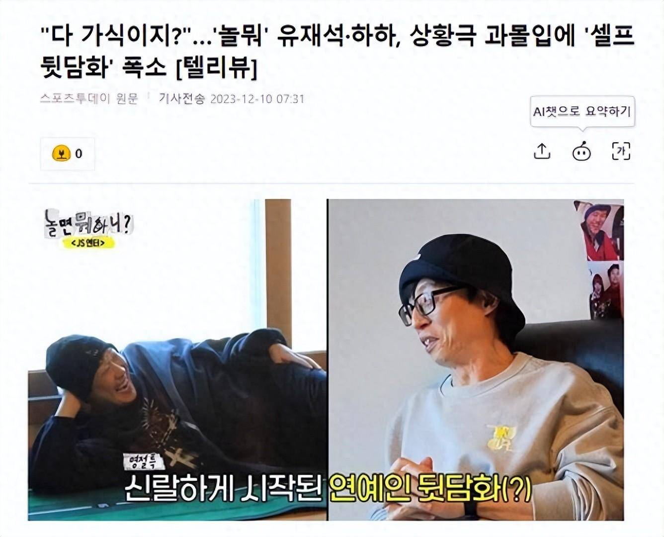 发现这一情况的李美珠说:“我该怎么办?我总是看到已婚人士的嫉妒” ,那一刻,刘在石和哈哈都尴尬了,并强烈否认,说:“你不应该这样看”,“我们也很高兴”,与此同时,刘在石问道:“你的眼睛为什么这么毒?”,逗得哈哈大笑。