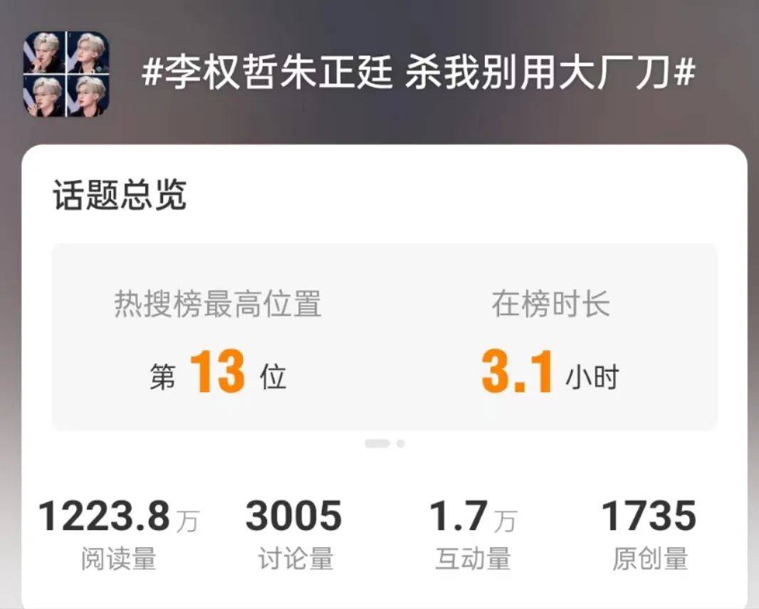 这一波回忆杀十分成功,话题#李权哲朱正廷 杀我别用大厂刀#火速登上热搜榜高位,一看就是戳中了秀粉们心里最柔软的地方。手段虽老套,但好使,吸引了一部分秀粉前来观看。只要节目组不要一而再再而三消费兄弟情话题引发大厂女孩(《偶像练习生》粉丝)逆反,相信她们就会一直看下去,成为节目的固定观众。