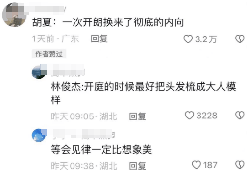 别说,你真别说,现在网友脑补林俊杰状告胡夏两人battle的小作文简直笑得我满地找牙,胡夏:真的栓Q,这辈子没这么害怕过。