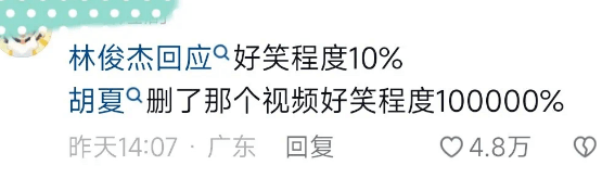 林俊杰回应好笑程度10%,胡夏删了那个视频好笑程度100000%。