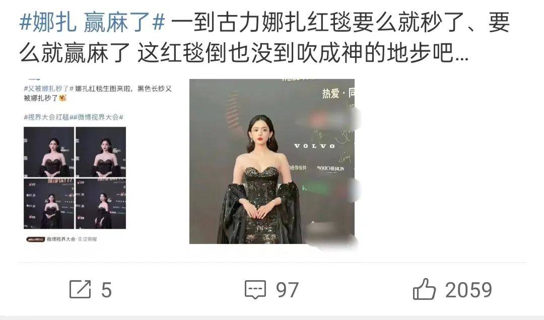 娜扎穿着黑裙走红毯,自信亮相,没过不久,就登上了热搜。
