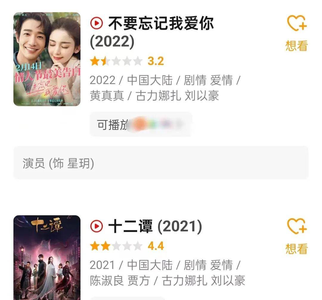 可一旦娜扎演女主,作品分数不是一般的低,《不要忘记我爱你》3.2分,《十二谭》4.4分,《风暴舞》3.6分,都不及格。