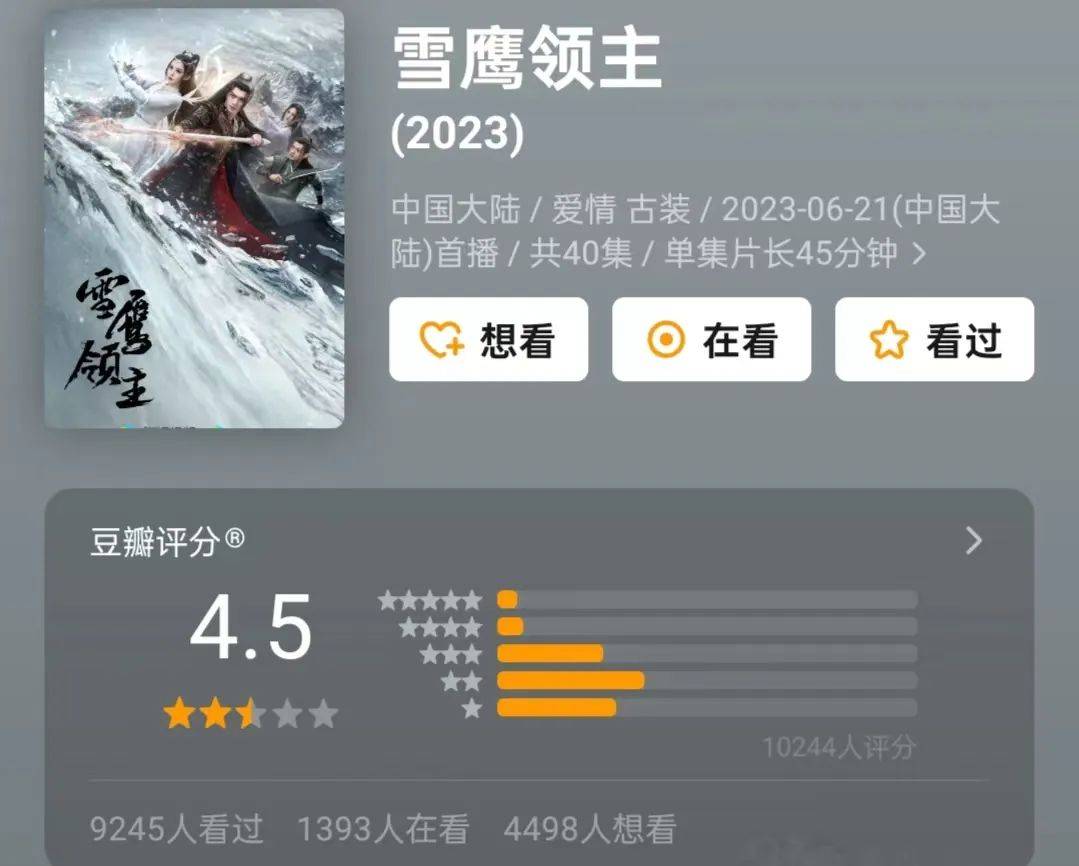 娜扎也面临同样尴尬的处境,今年,她有3部新剧播出,《雪鹰领主》4.5分,《无与伦比的美丽》5.7分,《风起西洲》虽然还没开分,但是满屏一星差评。