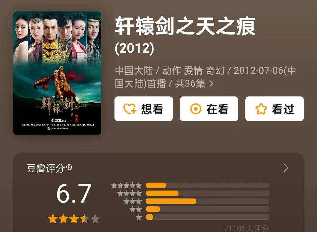 与杨颖一样,娜扎也是做配角,作品分数就还可以,比如《轩辕剑》她不是女主,有6.7分。