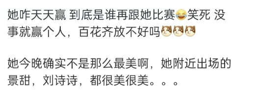 因此,看到这样的热搜,评论区很多人表示难以理解,觉得娜扎这样太败好感,动不动就赢了和秒了,艳压群芳不如百花齐放。