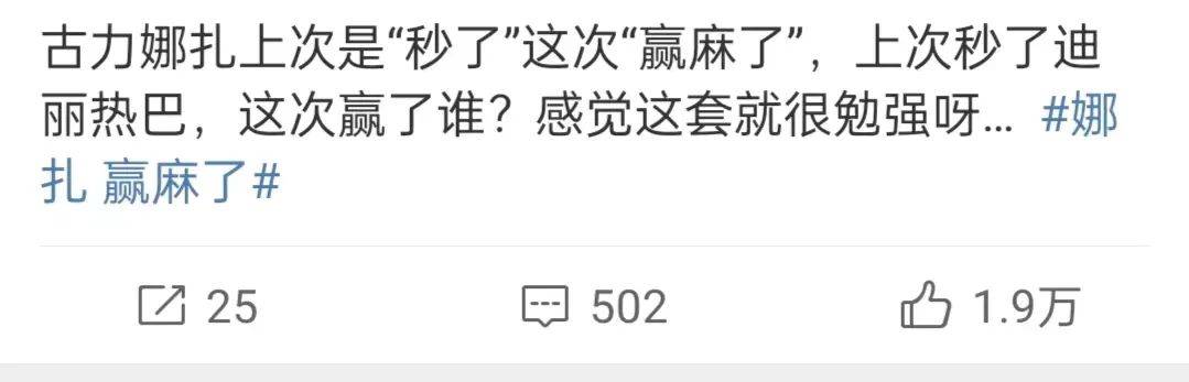 事实上,这并非娜扎第一次用“赢麻了”和“秒了”的词条,来美貌艳压了,前不久的一个活动,也有同样的词条出现。