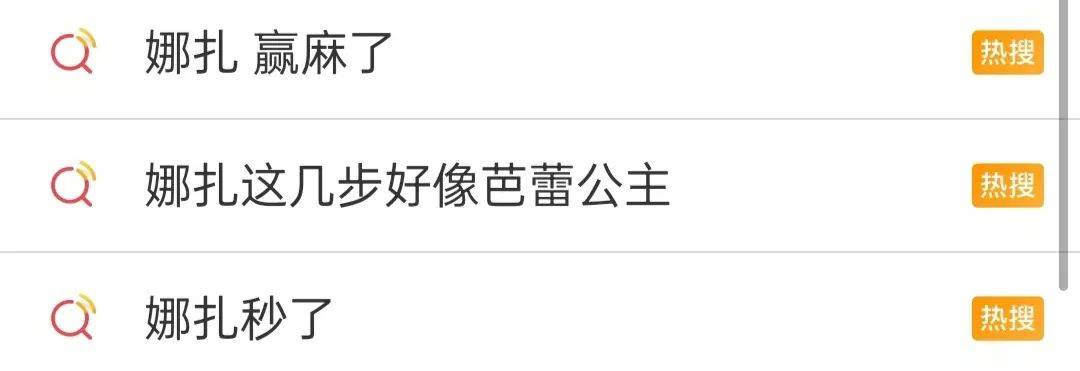 有三个热搜词条,分别是“娜扎赢麻了”,“娜扎秒了”和“娜扎这几步好像芭蕾公主”。