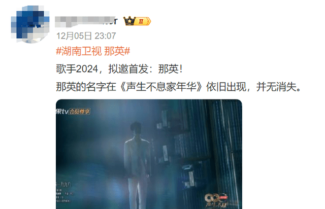 还有网友爆料湖南卫视的新综艺《歌手2024》拟邀的首发嘉宾就是那英,而且节目上虽然没有播出那英的画面,但是在标注歌曲原唱名字的时候,也提到了那英。