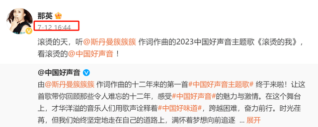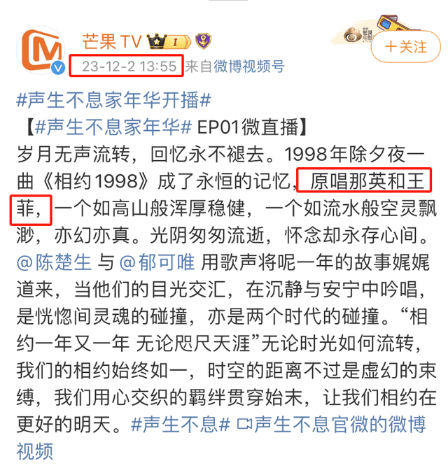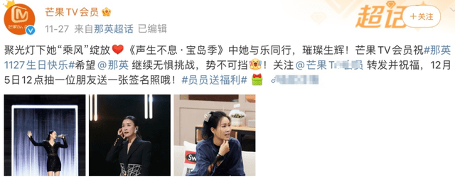 CCTV电视剧的官微在上个月也发了那英演唱《狂飙》主题曲的视频,就连《声生不息·家年华》的播出平台芒果TV,在宣传节目的时候,还提到原唱那英和王菲,此前芒果TV的相关微博还发文祝那英生日快乐。