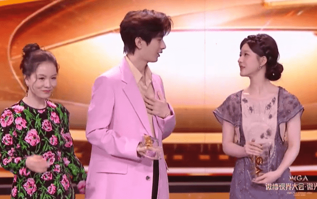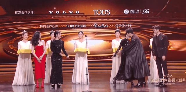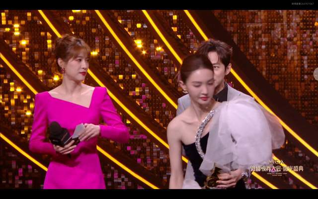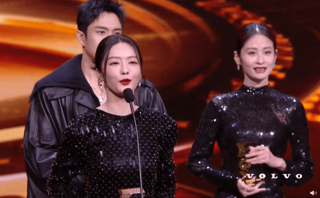 能看出来可能是因为开场迟到的缘故,整个颁奖礼的节奏都比较赶。明星领完奖之后,发表的感言也都比较简短。但刘浩存就不一样了,上来就是一通感谢加感情牌输出,说到后面好像还有些哽咽。