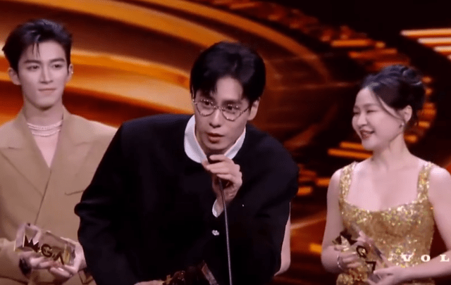 颁发第一个奖的时候,点了胡一天的名,胡一天不知道是走神了还是怎么了,没有第一时间上台,后来才反应过来,领奖发言的时候还解释刚刚有点儿激动,一直坐在原地,还好上来了,要不然还以为是对奖项不满呢。
