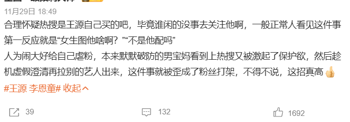 但隔壁对家的粉丝呢,则在吐槽这一切都是王源自导自演的戏码而已...
