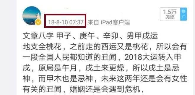 关于文章马伊琍感情的话题,每隔几天都会被翻出来说一说,圈圈先给大家一个肯定的回答,没有复婚。这两个人的事情,已经说过好多次了,就不详细说了,主要说一些大家不知道的事情。在“周一见”之后,两个人的感情就已经走到了尽头,马伊琍属于眼里揉不进沙子,且极度自立的女强人类型,绝对不允许自己另一半不忠于自己,只是鉴于当时娱乐环境,两个孩子,以及文章苦苦哀求自己的份上,才勉强没有直接离婚。文章自己也知道,能有当年如日中天的事业,靠的都是马伊琍的提携帮衬,马伊琍在内娱的地位,不比孙俪刘涛低,而且她的人脉关系要更广,文章能够和李连杰合作,也是马伊琍在其中牵线搭桥,靠文章自己?怎么可能!在离婚之前的这几年,文章为了自己的事业,也是一直在极力挽回:二次求婚表白,合作影视剧走夫妻档,他自己也清楚,离开马伊琍,自己事业必然断崖式下跌(事实证明,的确如此),可就和圈圈前面说的一样,马伊琍眼里容不得沙子的。离婚,是必然。离婚之后,不管是马伊琍还是文章,很快就认清了现实,现在也都有了自己新的感情生活,马伊琍谈过不止三个鲜肉小奶狗(参考萧亚轩),文章身边也是小女友没断过,事情必然已经过去这么久了,俩人还有两个女儿,关系已经缓和了好多,毕竟一日夫妻百日恩,“深仇大恨”早就没有了。看到这里,你就应该知道,他俩复婚是绝对不可能的。前段时间传出来的合影,也是因为女儿八年级毕业,所以说,他俩的唯一纽带联系,就是孩子。要说马伊琍,绝对属于旺夫类型,文章算是自作自受了,天作孽犹可恕,自作孽不可恕。文章马伊琍的婚姻,不管从现实角度来说还是从所谓的“玄学”来分析,都不会有好的结果,上面圈圈给大家说了现实角度,下面简单说一下“玄学”(认真看,会超出你的认知)。文章马伊琍离婚,是在2019年,而早在2018年,有很厉害的大师就已经预测过,他俩的婚姻已经名存实亡,必然是会走向破裂。详情见下图(不吹牛,无图无真相,不是马后炮)。
