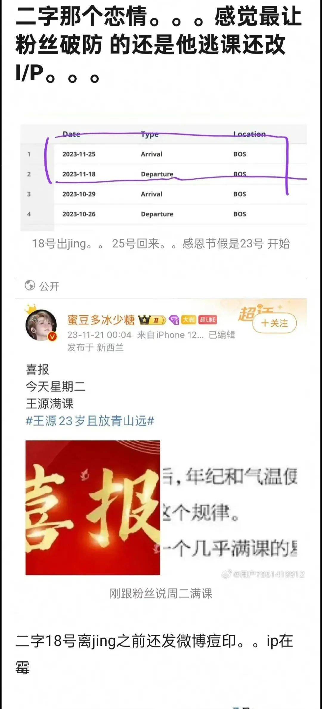 王源恋情瓜因为正主迟迟没有回应,有坐不住的粉丝继续爆料了。说王源18-25期间不在美国,但是王源发的微博ip显示美国,而且王源手机是iPhone13pro,但微博显示客户端为12pro,要么是代发微博,要么欺骗粉丝?还有王源粉丝说李恩童日常特别喜欢辟谣,但这次至今未发声。这件事挺奇怪的,狗仔都给你证明了说没在谈恋爱,那就顺着这个台阶下来然后说单身就好了。毕竟这单身声明也不烫嘴吧。或者就是在一起,那反正都23了,直接公开也没所谓的。这样一直吊着粉丝,让粉丝到处撕,各种拉时间条,但又没有实锤,粉丝是会觉得挺无力的。还有人说如果是真的,估计王源要为了粉丝抛弃嫂子了,要不然估计粉丝就要大面积脱粉了。这个时候都没回应,估计不会回了,可能就冷处理。
