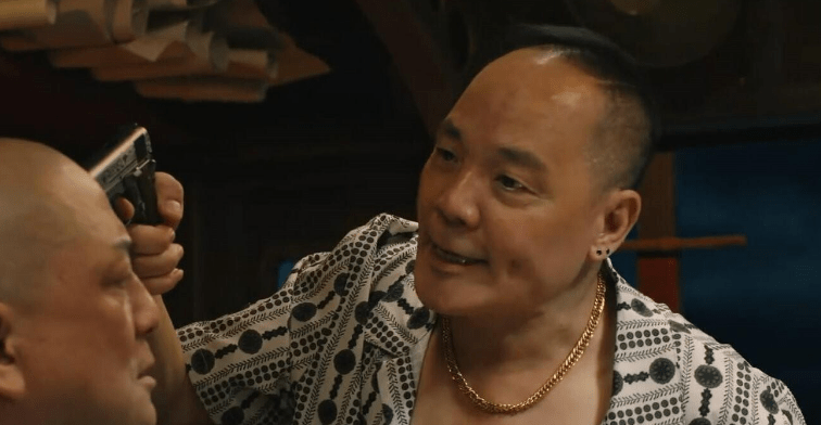 一开场的时候,他就吃着榴莲,一边吃着一边嚷着,果肉全部挂在嘴唇上,这油腻又浮夸的姿态,一点都不像是演的。