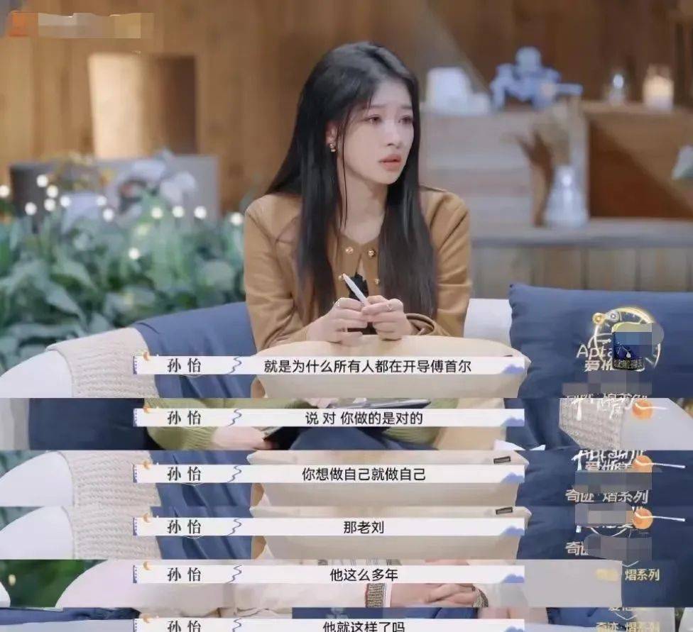在场的许多嘉宾都能理解傅首尔的想法,只有孙怡一个人为老刘而哭泣,她难过地表示,为什么大家都在关心傅首尔,而没有人在意老刘的感受,他只能被动地承受这一切吗?