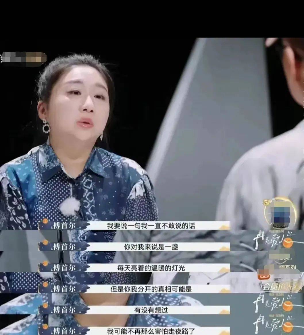 在《再见爱人3》的36问环节,傅首尔剖析了自己因原生家庭而造成的敏感性格,感慨遇见老刘非常幸运,因为他身上的温暖能够治愈自己童年所受到的创伤。