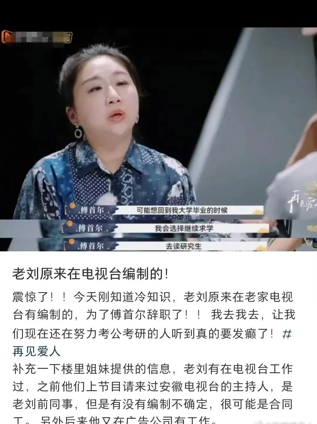 近日,婚姻纪实综艺《再见爱人3》迎来了收官,参加节目的三对夫妻都做出了自身的选择,一对选择复合,一对迎来了开放式的结局,而傅首尔和老刘双方都选择了结束这段婚姻。