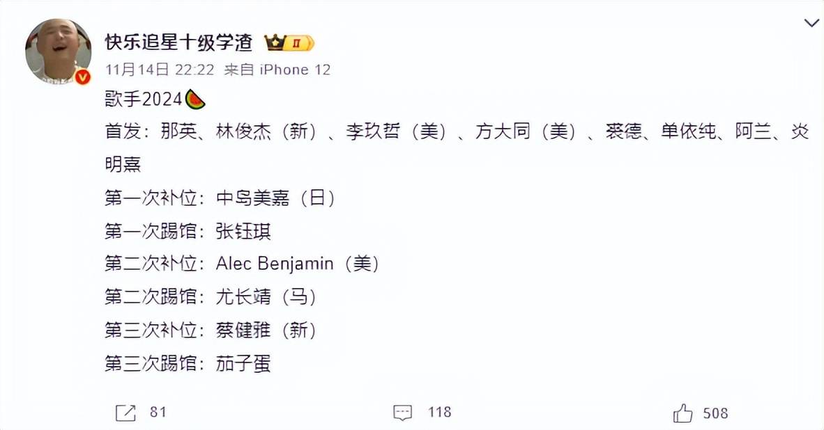 前不久,《歌手2024》登上了热搜,理由是嘉宾阵容曝光了