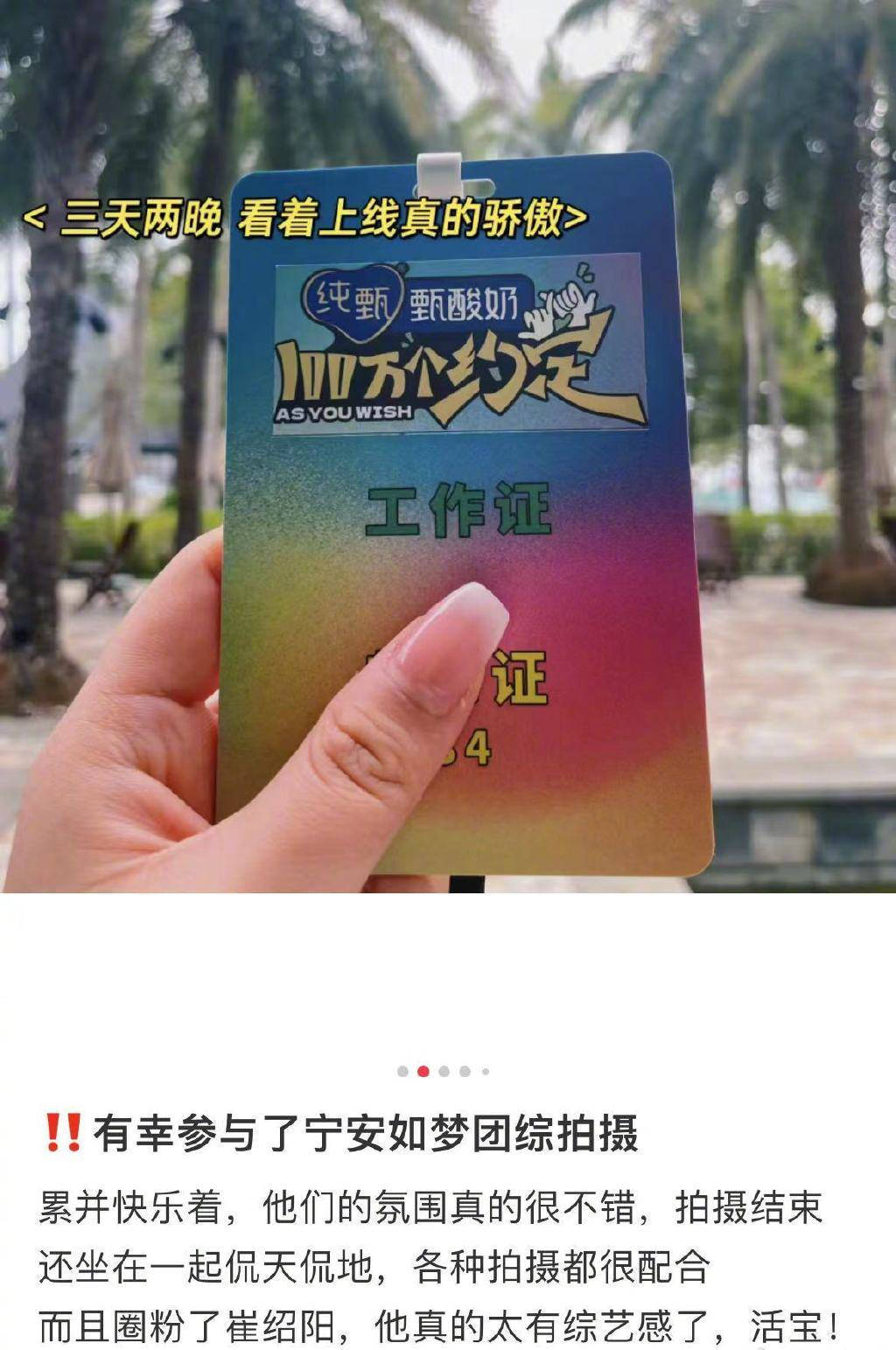 原标题:疑似《宁安如梦》团综工作人员发文称赞节目氛围 夸白鹿张凌赫好嗑