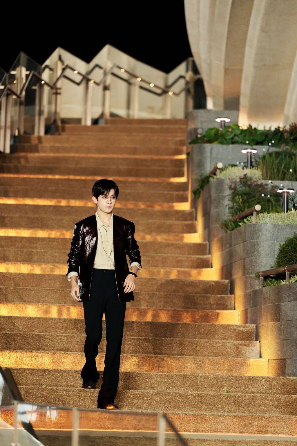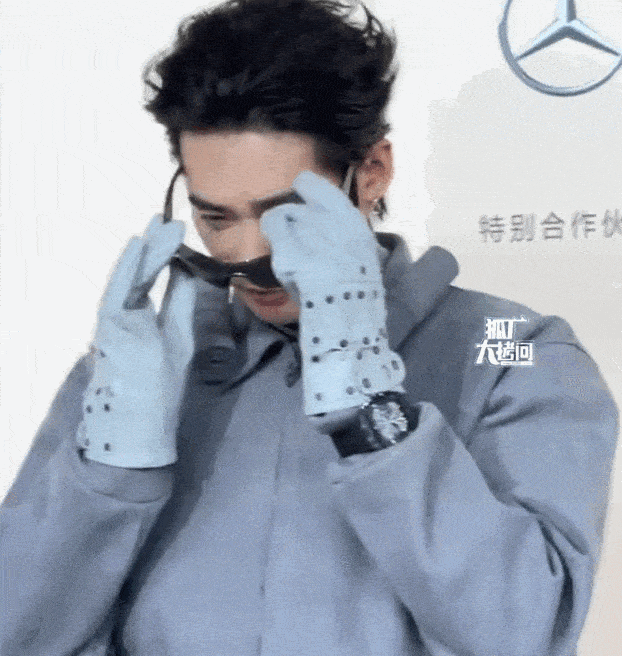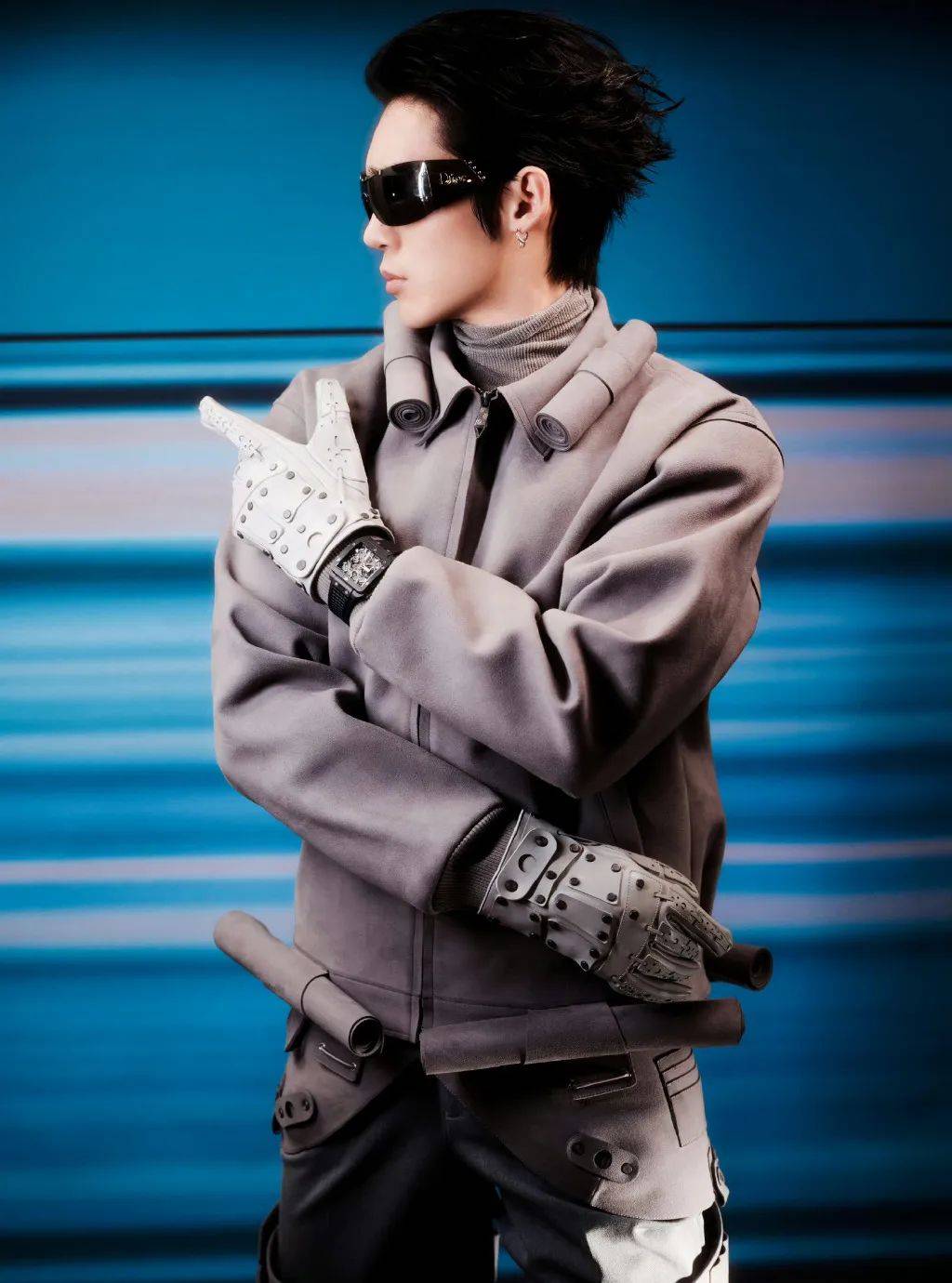 大胆一些的于适选择了创新look,赛博朋克造型的未来感在一片西装中打出了一张星际牌。