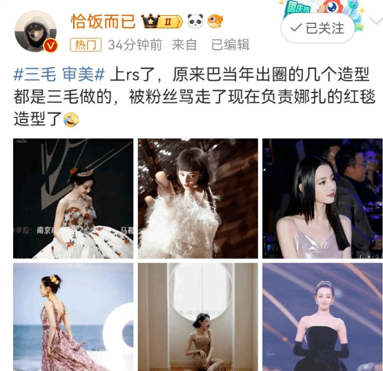 这边说娜扎学人精,造型都是迪丽热巴玩剩下的,那边说三毛最擅长的就是华丽复古风,非常适合娜扎这种大气美女,迪丽热巴是酸鸡跳脚;