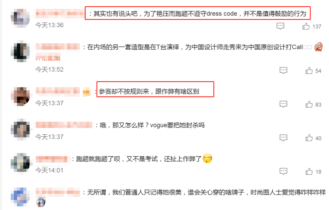 emmm,咋说呢,跑没跑题这事儿完全见仁见智,有网友觉得“参赛没按规矩来就是作弊”,就会有网友认为“美就完事了,谁在乎跑没跑题啊???”。