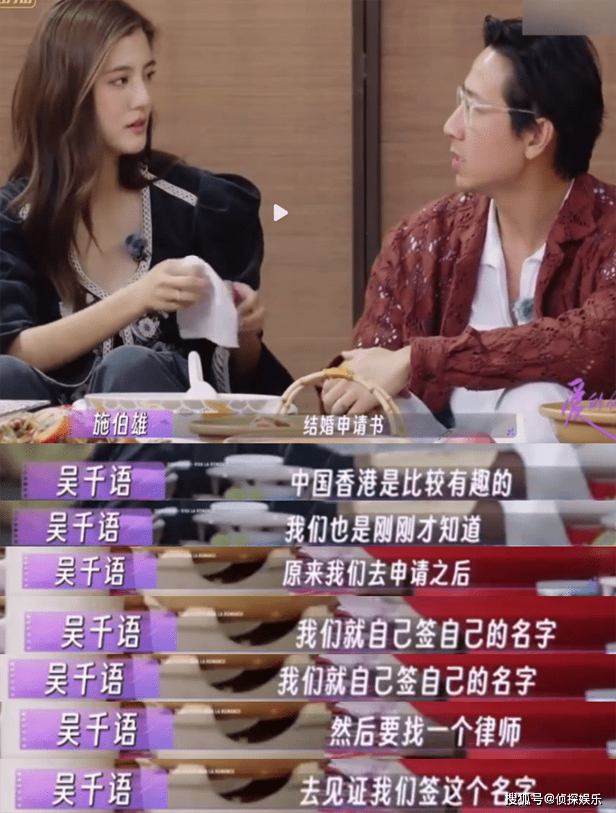 11月28日,在最新一期的《爱的修学旅行》里,演员吴千语与富三代男友施伯雄的高糖瞬间甜翻了一众网友。自从加盟该节目后,吴千语与施伯雄就备受关注。而这一期,吴千语和施伯雄还当众宣布了已经提交结婚申请书的喜讯,太美好了。