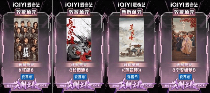 今年爱奇艺4部内容热度值破万作品《狂飙》《长风渡》《莲花楼》《宁安如梦》荣获“特别荣誉”并进入爱奇艺荣誉殿堂。现场,爱奇艺创始人、CEO龚宇,著名导演李少红、著名导演郑晓龙共同登台为主创们颁发荣誉、见证万众瞩目的时刻,并与主创们一同点亮荣誉之星。截至目前,爱奇艺10部内容热度值破万的作品进入荣誉殿堂,包括《赘婿》《人世间》《苍兰诀》《罚罪》《卿卿日常》《风吹半夏》《狂飙》《长风渡》《莲花楼》《宁安如梦》,这些作品具有强大的内容影响力,照亮了影视市场高速发展的璀璨星河。未来,爱奇艺将继续坚持创作初心、秉承专业匠心,为影视市场输送更多与时代同频共振的品质佳作,持续引发所有观众为好作品的尖叫。
