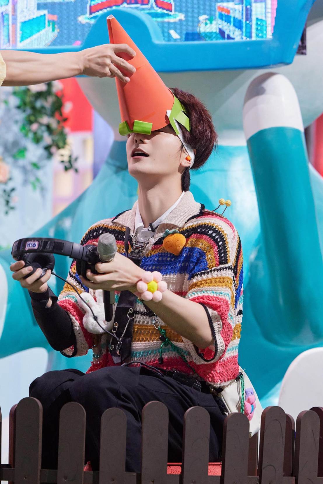 “兔兔大声唱”游戏考验敏捷度,音乐响起之后,成员们需要根据分词依次演唱,不能重复,如果多人同时冲抢锤子,那么拿到锤子的人需要精准找出其他人并且用锤子攻击他们。前几局迟迟没有出现赢家,杨迪建议:“把第一句让给马丽姐怎么样?”大家纷纷附和,马丽嘴上拒绝身体却很诚实,音乐一响立马动身抢锤子,只不过让她意外的是还有两个身影出现在了她的身边,原来是丁程鑫秦霄贤故意“捣蛋”截胡了马丽,二人得逞后还击掌暗喜,惹得众人哭笑不得。游戏继续,状况不断,经过不懈努力,范世錡终于抢到锤子,前一秒还在自信微笑,下一秒看着回到原位的众人,微笑消失茫然问到:“都谁啊?”信心满满落下第一锤就打错了人,白忙一场,综艺感瞬间拉满。