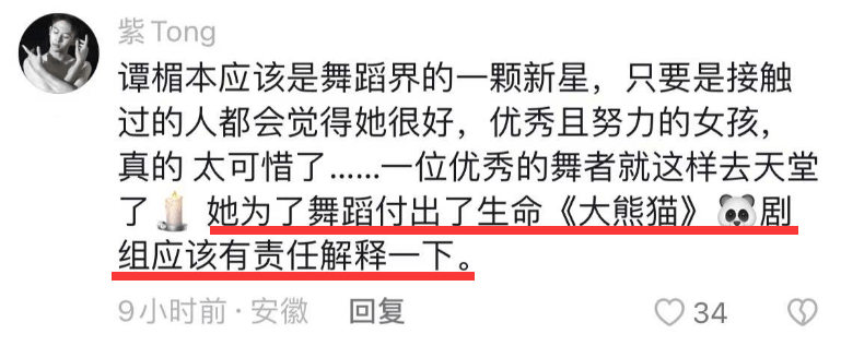 还有同学为谭楣讨要说法,说她为舞蹈付出了生命,《大熊猫》剧组应该有责任解释一下。
