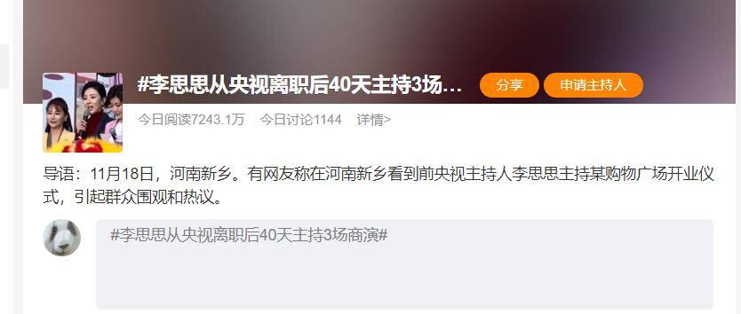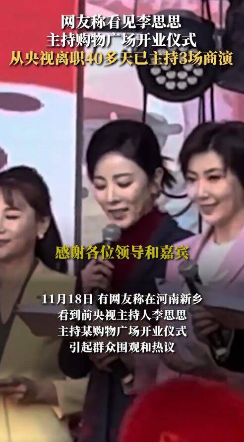 在官宣从央视离职后,李思思可以说是迅速开始自己的事业,最近的是她在河南新乡主持某购物广场的开机仪式。