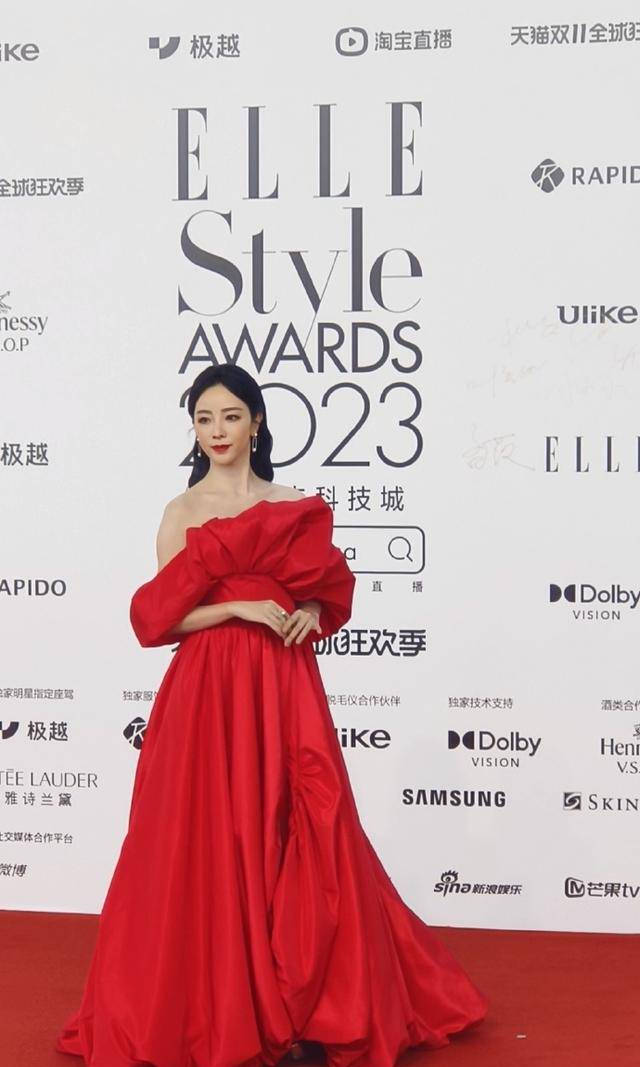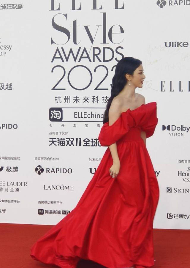 她先是一袭红衣走了红毯↓