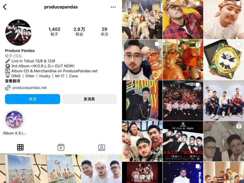 熊猫堂较为突出的成绩是在海外。还没参加节目时,熊猫堂就开始布局包括Instagram、Facebook等在内的海外社交平台,并与海外的娱乐公司合作,在当地举办快闪店、展览、发行当地语言的音乐作品等等,疫情过后,下一步就是海外的线下演出。