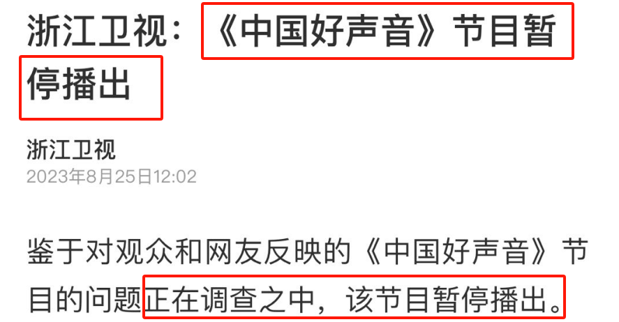 就在3个月前,《好声音》还一度传出复播消息,2023年8月,浙江卫视对外发布的公告上,也是强调节目暂停播出,但就最新招商方案没有《好声音》这一点看,网友们似乎等到了他们期待的“永久停播”。