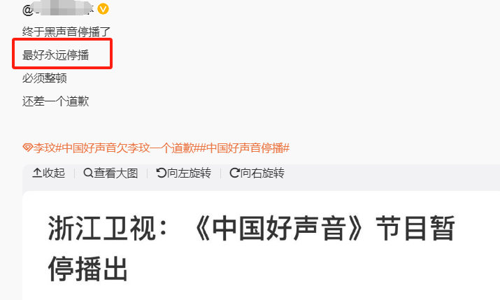 有网友直言,《好声音》早就该结束了,还有网友吐槽,浙江卫视很多节目其实都可以停播了。