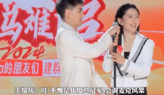 讲话的全程,王耀庆都在cue林志颖为冠军。