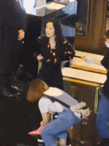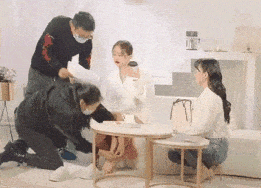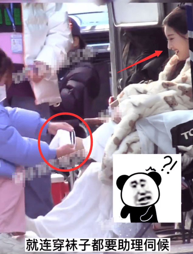 除此之外,助理们还经常提供“跪式服务”,来伺候明星们穿鞋,王子文就曾被拍到耍大牌的行为,她妆容精致地喝着咖啡,一旁的男工作人员对她点头哈腰,女工作人员双膝跪地为她穿鞋。