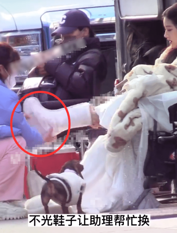 杨幂在拍戏时也需要助理为她换鞋,助理也是非常积极地蹲下了身子,但杨幂却忙着给自己整理头发和衣服,把蹲下的助理晾在了一边。