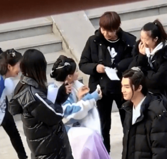 杨超越曾经也被拍到在片场拍戏时,周围围着好几个工作人员,可能是由于天气太过寒冷,杨超越被冻得流起了鼻涕,还拿着一张纸正在擤鼻涕。