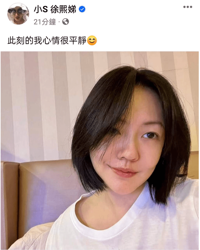 但小S已经先忍不住了,率先在21日凌晨在社交平台发文,称“此刻我的心情是很平静的”,并晒出一张面带笑容的自拍照。