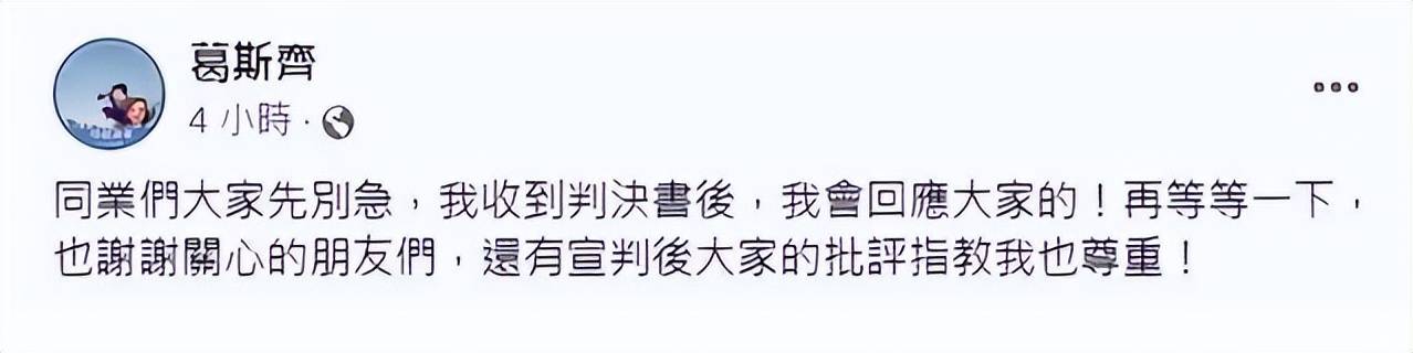 答案不得而知,但从媒体曝光的消息来看,葛斯齐似乎还想掀起一些水花,而起因就是在11月20日判决书正式出来之前他发布的一则动态。