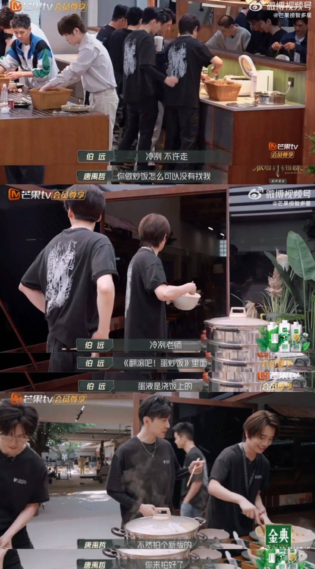 节目里,作为台偶十级学者的伯远做蛋炒饭时直接cue到了唐禹哲的影视梗,贴脸开麦说“冷冽,不许走”,他甚至记得冷冽在《翻滚吧!蛋炒饭》里做蛋炒饭的步骤。