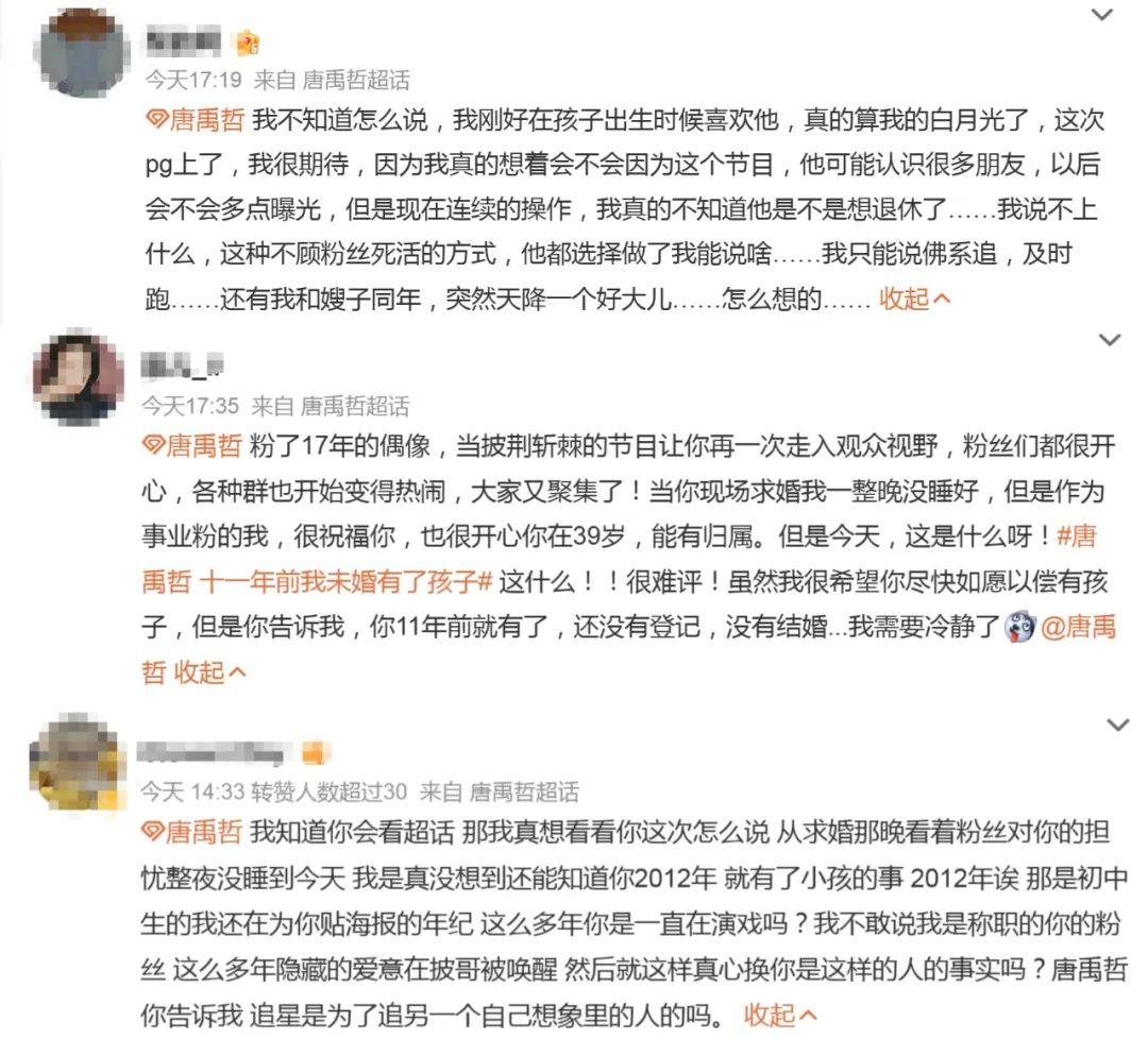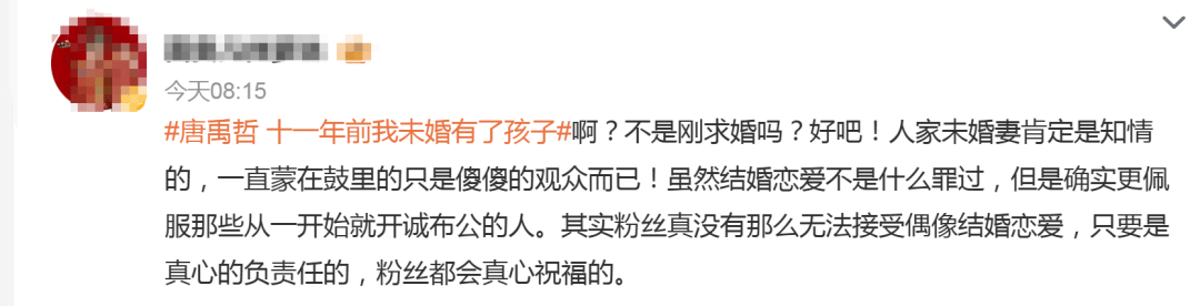 阿杠相信,追唐禹哲的粉丝这些年早就修炼出了佛性心,她们不是不愿意偶像结婚,也不是不接受偶像生子,她们在意的是多年的隐瞒和欺骗,他的孩子不是1个月或者1岁,而是11岁啊……