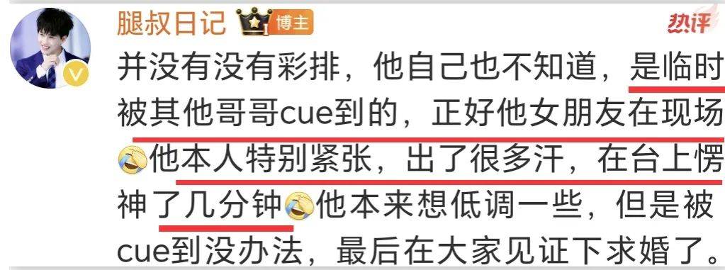 更要命的是,根据现场观众的说法,别说女方懵了,男方更懵,因为这场求婚男女双方是一起知道的,唐禹哲在台上被cue时简直汗流浃背。