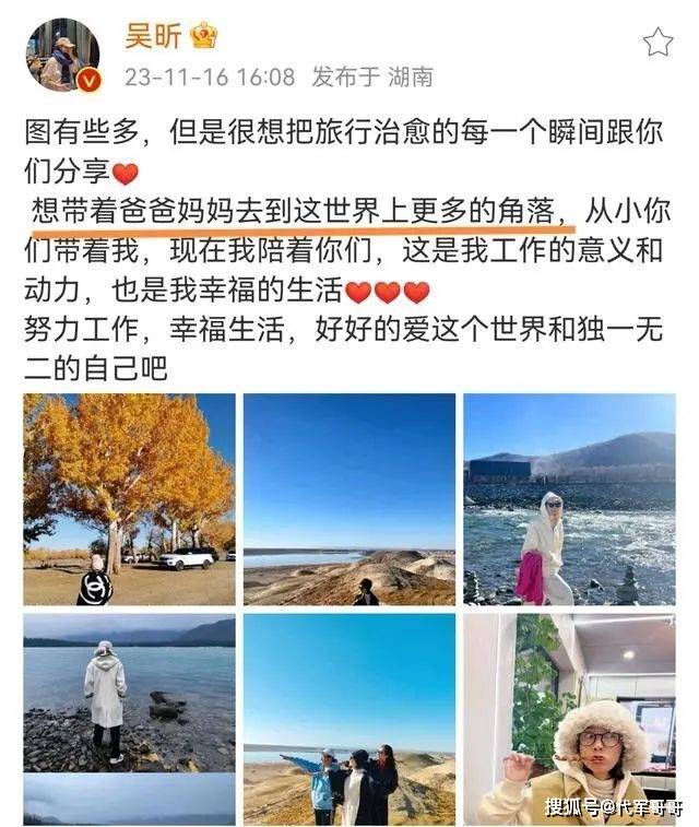 事实上,吴昕确实喜欢旅游,并且还带着父母,从她近日的动态中也能看到,她在配文中表示希望带着父母走遍世界的每个角落。