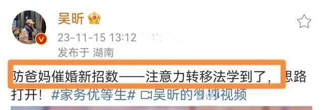 看来吴昕与郑凯还是有些感情基础,并不是闪恋,面对这么多有力的恋情证据,吴昕又该做出如何反应,从她的动态中也能得知一二。吴昕在近两天发文,表示“防止爸妈催婚新招数,注意力转移法”。注意!吴昕说的不是父母催着交往男朋友,而是“催婚”。