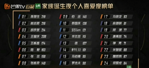 节目播出后,陈楚生的人气也是断层般的领先。