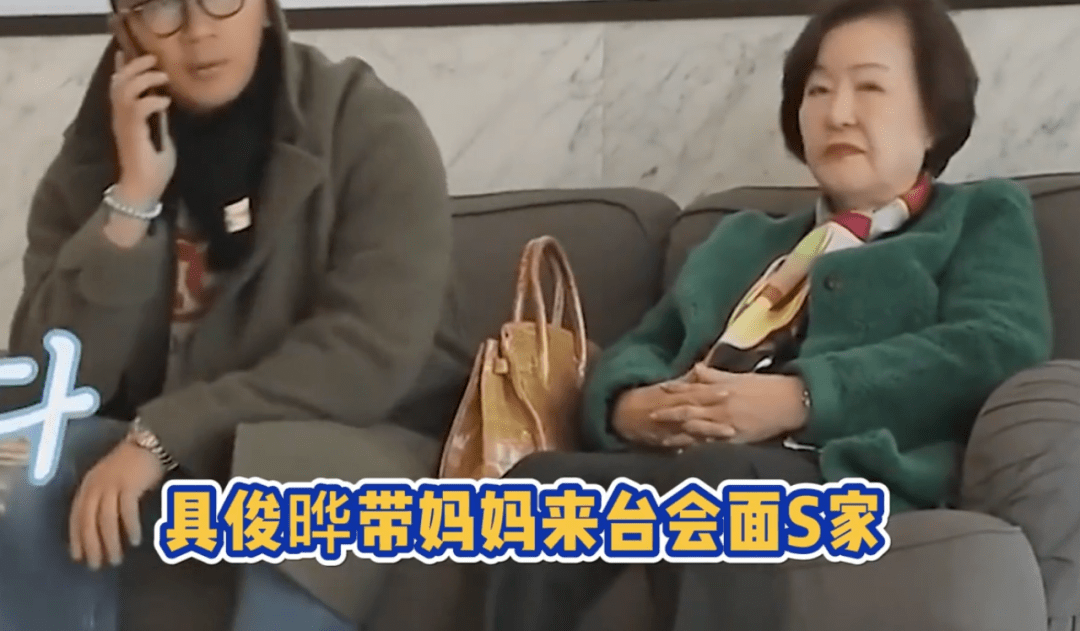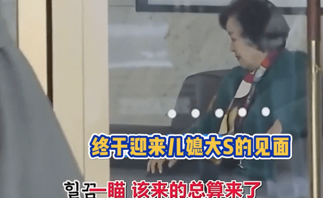 在和具俊晔坐着等待大S时,韩国婆婆一脸严肃,当大S给具俊晔打电话表示自己到了时,韩国婆婆也是拉着一张脸准备起身。