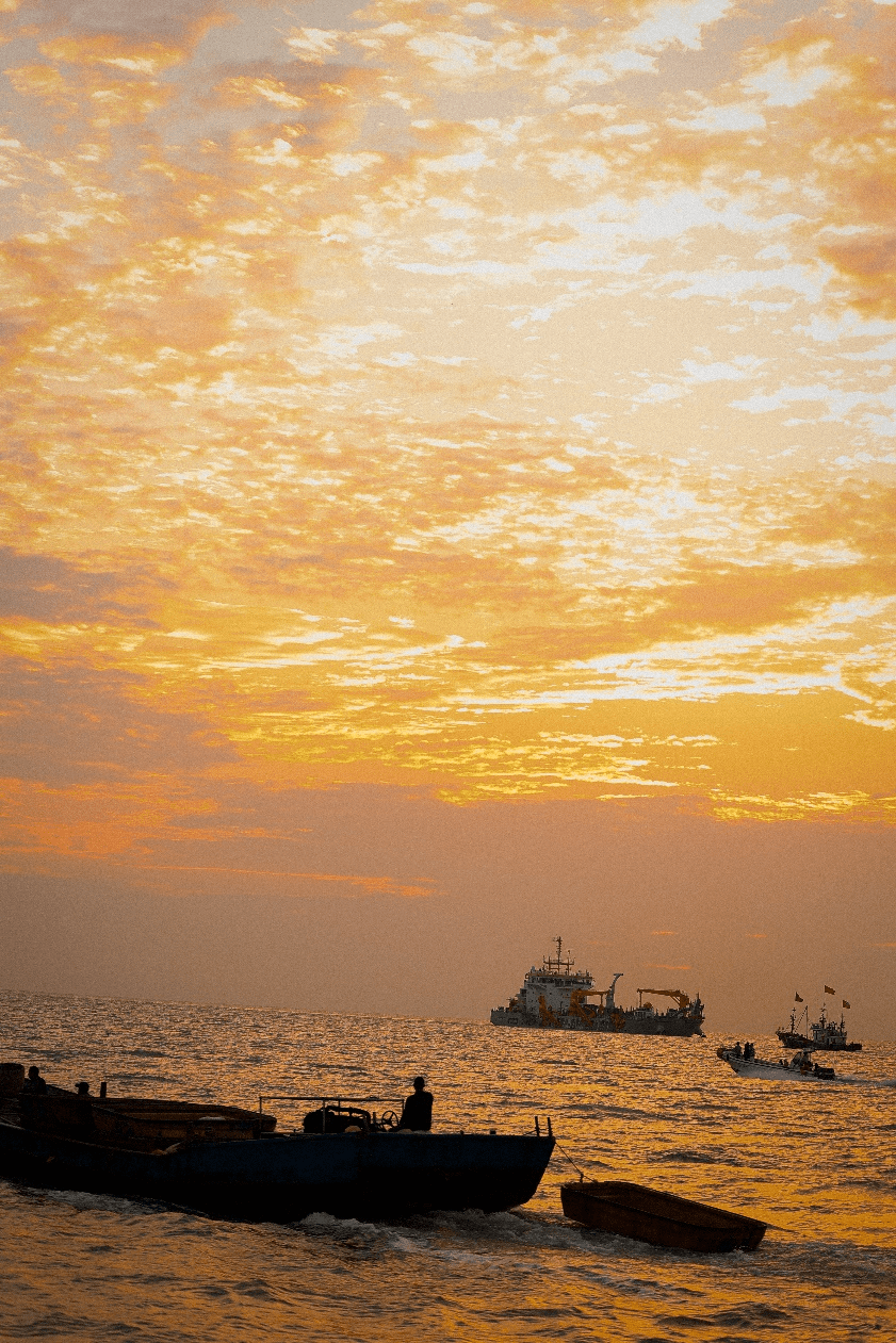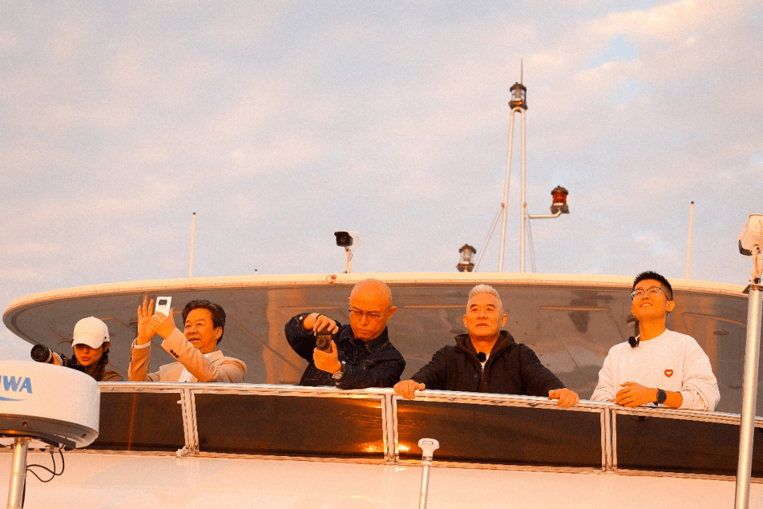 这次的旅程从开场便不一样。“闻说蓬莱几清浅,栽桑更欲过鹰游。”真正地在海上观景才能看到连岛如同仙境的美。嘉宾们坐上船,共同追寻清晨的第一缕阳光。
